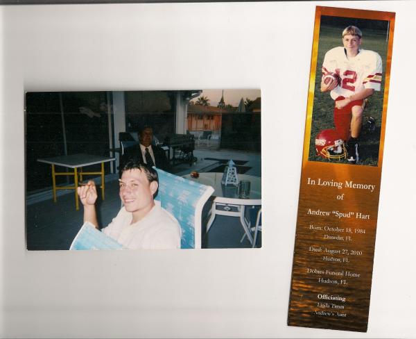 You ever just feel like you have no one to talk to but there's always someone there but just not the person you want to vent to and it ends up being the last person you ever thought you'd want to... But know they understand, experience, can relate, and will just listen the same way they just secretly wished someone listened to their silent crying out without opening their mouths? But it seems now a days everyone's quick to talk but never silent enough to hear each other... I know that isn't my usual way of starting out our conversations... But my dear dear sweet bestie spudsickle I'm feeling just utterly lost.... I need you more now then ever... usually when I gave doubt in my heart, my thoughts, my situation, my gut, my hope and my faith there has always been a sign from God and I in my heart and soul believe you send me signs everyday. On good days, bad days or days that who knows going to be right side up or right side down... I am sadden to say through everything I've been through emotionally, mentally, physically and spiritually I'm starting to forget your words you wrote me on the last postcard I had received from you it's been many years it seems but still as if it was yesterday... I have tried my hardest Andrew to keep my word and to follow God's will and even at times I had lost my way you and our Lord has shined the light through my darkness leading me back to Him. I miss you terribly. I need you! I need my best friend, my brother, my spudsickle, my one person who in times of trial and tribulations could always help me find the solution. But spudy I'm sorry I can't seem to find my way back.. i feel as if no matter the paths I take in my life in always letting someone down and if not I'm letting myself or God down... I pray silently to God and ask him to help and protect others to look over nina, sarah, Jon and all of the family and friends that miss you terribly... But never can I fund it to pray for myself.... I talk to you to help me think positive and to remember your wonderful embracing smile and your warmth of your laugh but spudsickle it's getting harder and harder everyday.... I feel I'm losing myself, my hope, my faith.... I just wish I could just speak to you, nina, Jon again to keep that love, hope, happiness, memories, and faith in my heart again. I truly love you Andrew Hart you will FOREVER BE MY BEST FRIEND MY SPUDSICKLE. UNTIL GOD ALLOWS US TO MEET AGAIN! please while you're there with all those who we love and lost and living glorious with Our Lord please keep watching over us all. And know every time I see the sun set I know your sending your love to us all. |